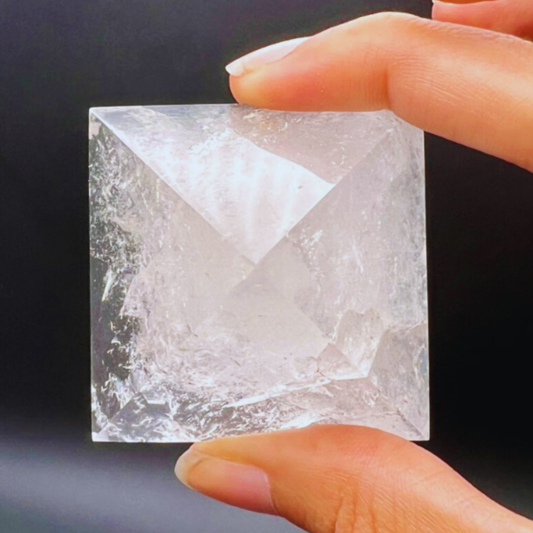 Es una pieza que combina la fuerza de la geometría de la pirámide con la claridad del cuarzo cristal, generando una energía muy ordenada y equilibrada.