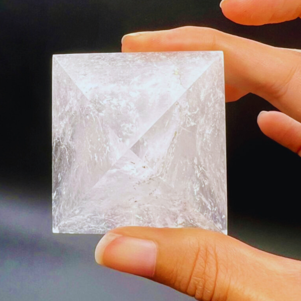Es una pieza que combina la fuerza de la geometría de la pirámide con la claridad del cuarzo cristal, generando una energía muy ordenada y equilibrada.