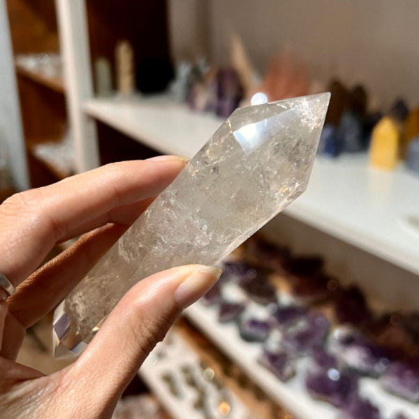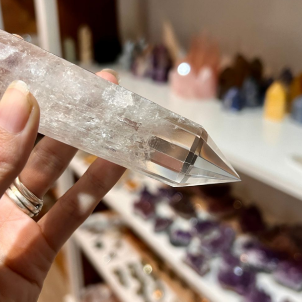 El cuarzo cristal en su forma natural ya es un amplificador extraordinario — transparente, puro, sin interferencias. En corte Vogel esa capacidad se potencia al máximo.