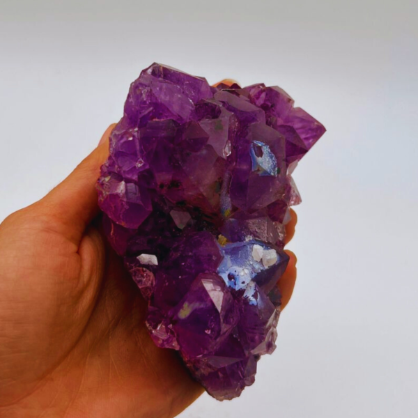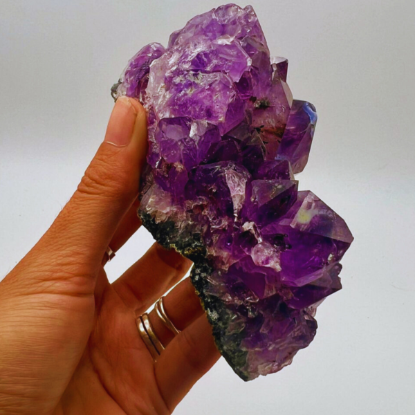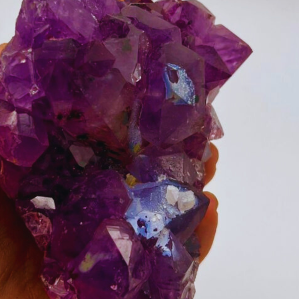 Las drusas de amatista tienen algo muy especial. Son muchos cristales creciendo juntos sobre una misma base, y eso hace que la energía se expanda de forma muy armónica en todas las direcciones.