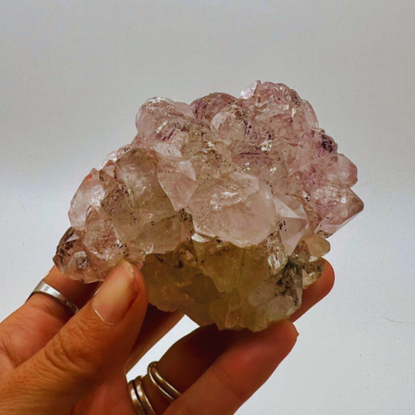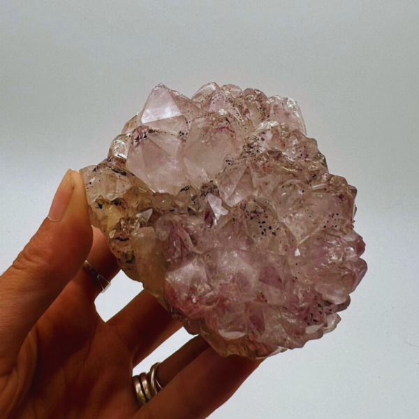 Las drusas tienen muchos cristales creciendo juntos, y eso hace que irradien energía en todas las direcciones. Por eso muchas personas las eligen para armonizar un ambiente, una mesa de luz o un espacio personal.