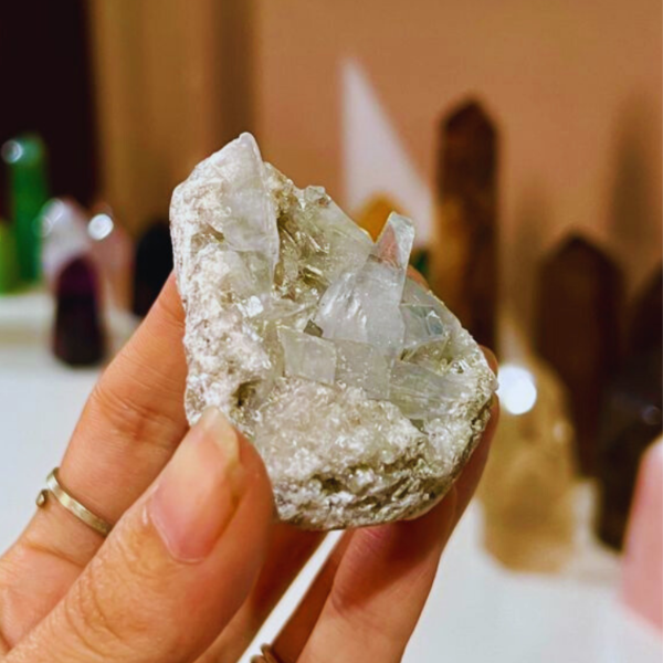 La celestina es una de esas piedras que se sienten antes de entenderse. Su color celeste suave y su brillo delicado generan una sensación inmediata de calma, como si el ambiente bajara un cambio apenas la apoyás.