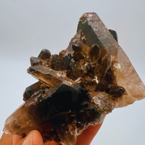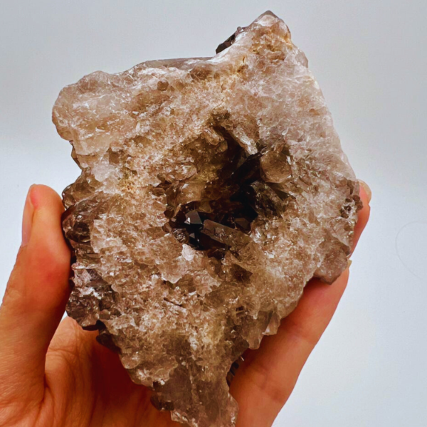 Cada drusa es única, con variaciones naturales en forma, tamaño y tonalidad propias del cuarzo ahumado.