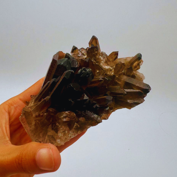 Cada drusa es única, con variaciones naturales en forma, tamaño y tonalidad propias del cuarzo ahumado.