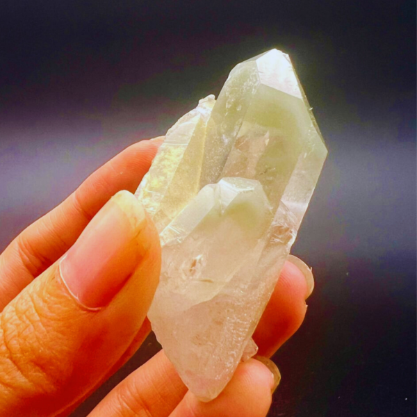 A esto se suma la característica lemuriana: estriaciones naturales en las caras del cristal, como líneas grabadas, que indican un crecimiento particular y continuo. Son marcas reales de formación, no algo agregado, y vuelven a cada pieza absolutamente única.