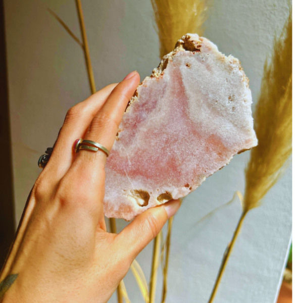 Si buscás una pieza que transforme sutilmente el ambiente, esta laja de amatista rosa es perfecta: cálida, única y muy elegante.
