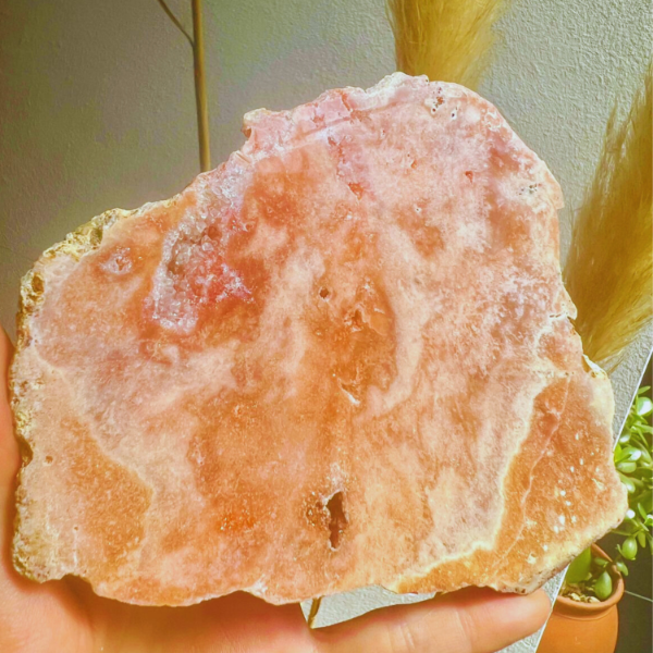 Si buscás una pieza que transforme sutilmente el ambiente, esta laja de amatista rosa es perfecta: cálida, única y muy elegante.