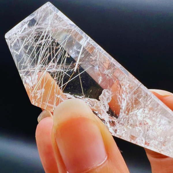 El rutilo se forma naturalmente dentro del cuarzo, creando estas inclusiones finas y brillantes que hacen que cada pieza sea absolutamente única. No es un cuarzo “liso”, es un cuarzo con carácter, con movimiento interno, con vida.