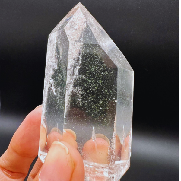 Cuando los mirás de cerca, no es solo transparencia: hay paisajes internos, velos, pequeñas cristalizaciones y minerales atrapados que quedaron sellados mientras el cuarzo seguía creciendo. Eso es lo que se conoce como lodolita o “cuarzo jardín”.