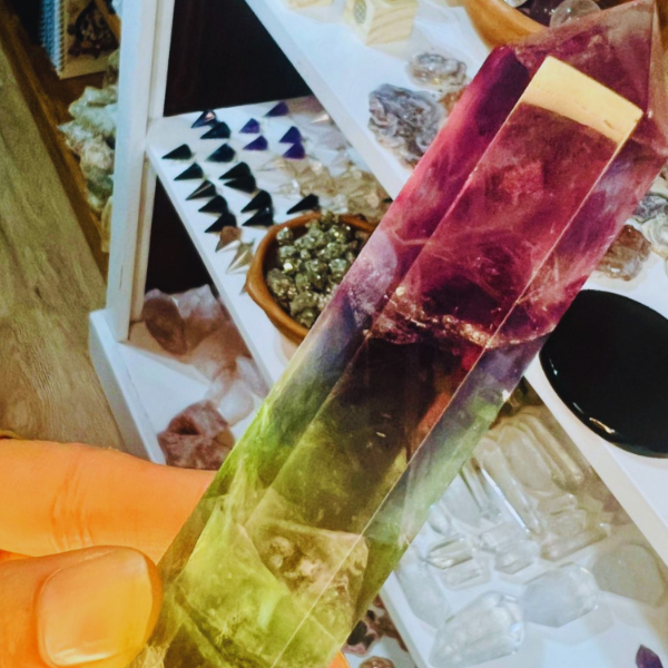 El maestro de fluorita arcoíris es pura claridad en movimiento. Sus capas de color reflejan diferentes frecuencias que trabajan a la vez: ordenan la mente, equilibran las emociones y limpian la energía del entorno. Es una piedra que acomoda todo lo que está disperso, ayudando a tomar decisiones desde un lugar más centrado.